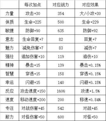 关于《天赋》《技能》1点属性战力加成统计