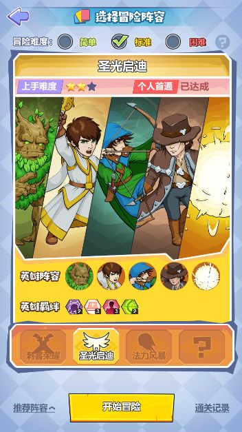 冒险预置阵容{圣光启迪}的简单难度攻略流程