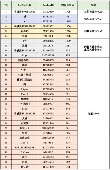 【开奖】开服盖楼活动奖励名单公示