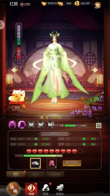 { "text": "洞房玩法\n在游戏中,总有一个女人会不离不弃的陪伴左右,休闲时为你跳舞,激斗时为你助战,是我们游戏中坚实的后盾和温暖的港湾,这就是红颜。在红颜玩法中,有一位倾城红颜和多位倾国红颜,我们可以选择其中任何一位在我们作战时助攻,帮助我们取得胜利。爱美之心人皆有之,我们只需要给红颜赠送胭脂、粉黛、宫纱等,便能获得红颜的欢心,在为你献舞的同时还能大大提升其实力。多余的装备也可以赠送红颜,帮助其升级。\n红颜也能够帮助我们提高产出,游戏当中增加了红颜的放置玩法,玩家只要在线就可以获得产出材料,一段时间内点击红颜旁边的小猫咪,就会获得爱心,爱心可以兑换成战力提升的材料,这也算是红颜对我们的反馈吧!\n关于红颜的获得,我们只需要在洞房玩法中,为表达心意赠上心意玫瑰,便能获得随机红颜的欢心,掀盖头的时候,我们也许会获得多位红颜的欢心,欣赏红颜献舞的过程,也可能失落而归,被丑陋小贼吓一跳,是一个扣人心弦的过程。", "raw_text": "" }
