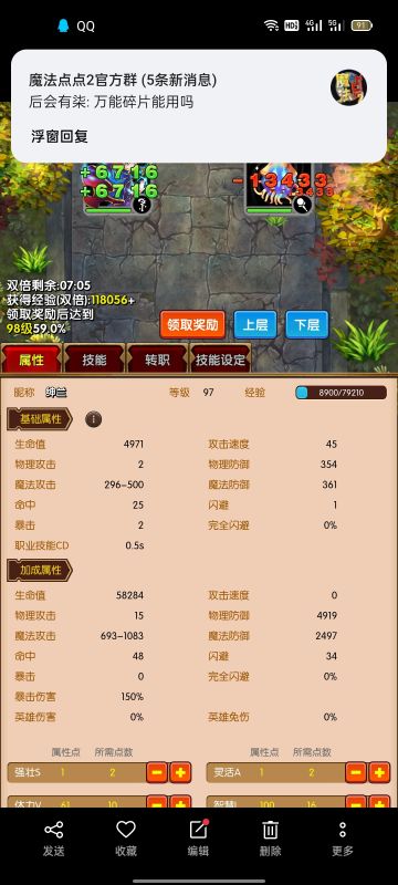 { "text": "新手推荐开局大法师,进游戏先看的转职技能,把转职技能需要的技能点满就可以专职了,之后点箭头,把属性重置都加在智慧上,把给的金币用在最后一个技能上,技能搭配都上最后一个技能,然后点挂机第一层,挂着机可以先把广告看了(50),挂到10级去打关卡打完就有10级装备,装备是先合成(金币打✓)然后洗练,洗好双攻,穿戴上,就可以挂第二层,挂到19级,技能都点智慧,打关卡20关,领装备,和上面一样,最好都选一下可以秒的,这样升级快,30级进公会,可以买到双倍,经验翻倍,到40级左右,估计可以打过30,然后洗练属性为3件双攻百分比,剩下的单攻百分比加血量防御百分比,当等级到达95级左右,血量5万左右,防御3千多,攻击1100左右就可以过40关,40级得的装备太费金币,钱不多少尝试,到99级可以转生,转生之后没玩明白,就这样吧", "raw_text": "" }