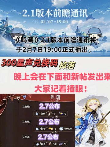 鸣潮v2.1版本前瞻兑换码提前插眼
