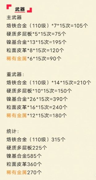 120级武器所需材料汇总