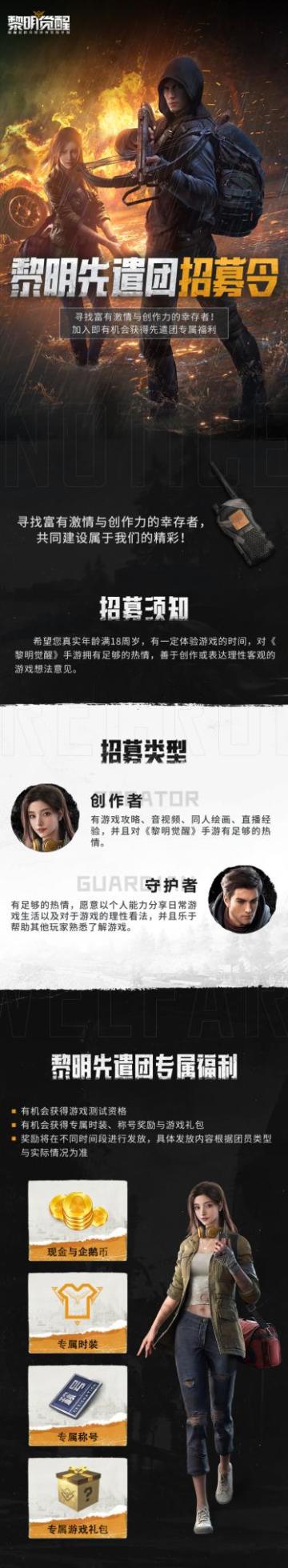 黎明先遣团招募开启!大世界需要你的创作激情