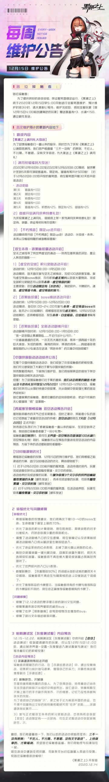 「最新情报」12月15日5:00停服维护公告