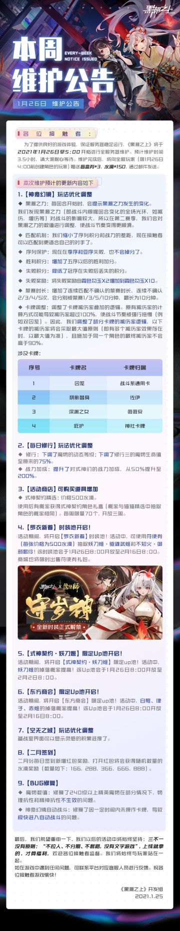 「最新情报」1月26日5:00停服维护公告