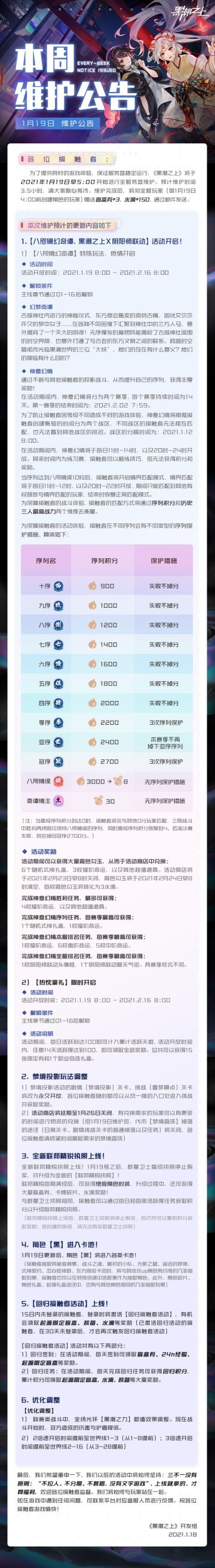 「最新情报」1月5日5:00停服维护公告