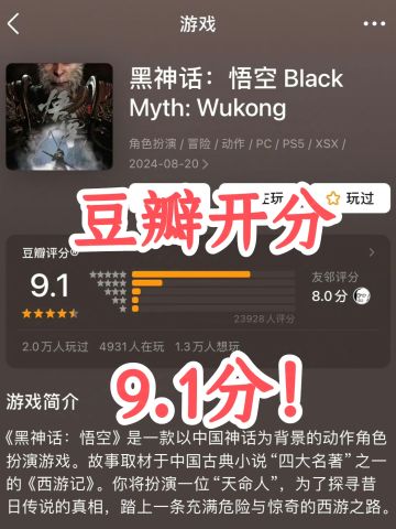 【黑神话:悟空】豆瓣开分:9.1分!