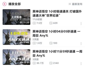 哔哩哔哩UP主一小时速通《黑神话悟空》