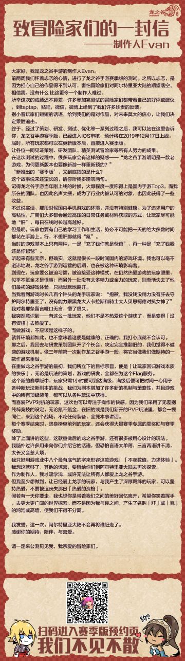 【黎明测试预告】来自制作人Evan的一封信