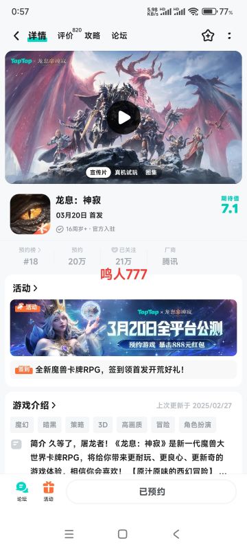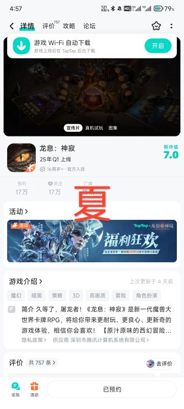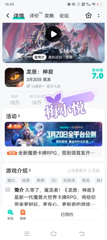 已预约,期待游戏上线时人气爆棚
