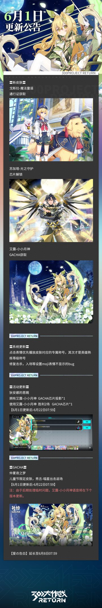 亲爱的天启城冒险者们: 奥莱科技预计于2023年6月1日08:00-11:00,对相关设施进行维护工作,届时天启城入口将关闭,您将无法登录游戏,请提前做好下线准备。 根据工作进度维护可能提前结束或推迟,请冒险者们互相转告! 以下为本次维护更新内容及近期修复/优化内容。 冒险者俱乐部