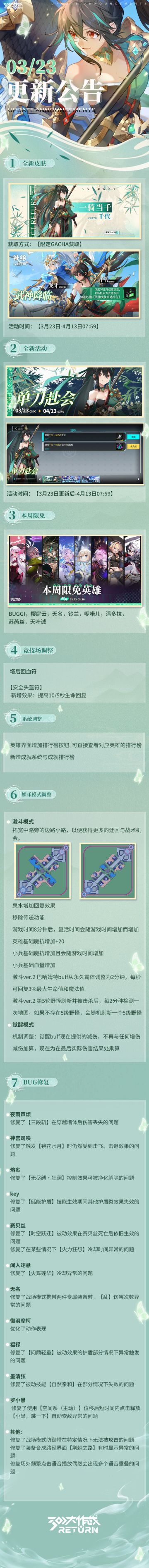 亲爱的天启城冒险者们: 奥莱科技预计于2023年3月23日06:00-10:00,对相关设施进行维护工作,届时天启城入口将关闭,您将无法登录游戏,请提前做好下线准备。 根据工作进度维护可能提前结束或推迟,请冒险者们互相转告! 以下为本次维护更新内容及近期修复/优化内容。 冒险者俱乐部