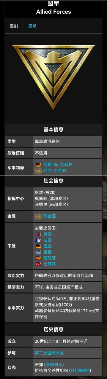 《命令与征服》系列维基百科档案:《红色警戒1》游戏时期中的设定