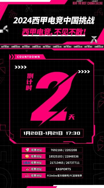 2024西甲电竞中国挑战赛倒计时3天