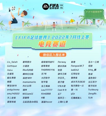 《FIFA足球世界》2022年7月线上赛电竞赛道微信区入围名单