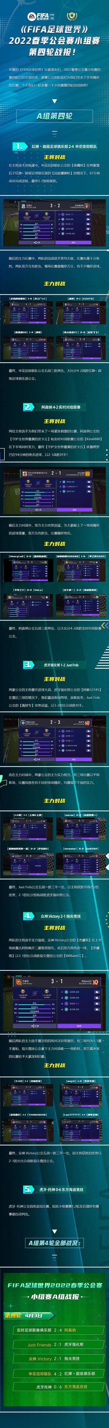 《FIFA足球世界》2022春季公会赛小组赛 第四轮战报!
