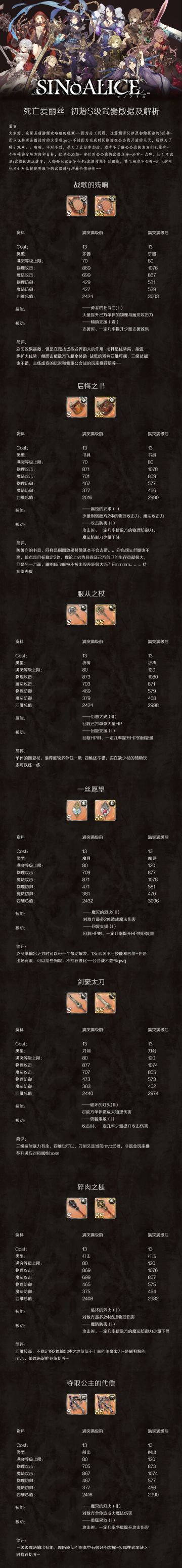 【萌游姬翻译组】SINoALICE 武器资料翻译