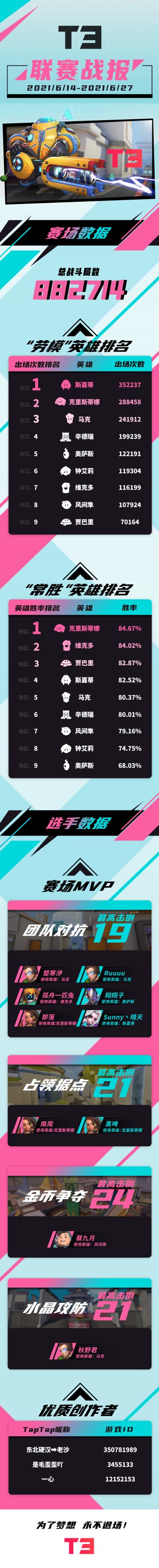 "text": "T3联赛战报 | 第1期双周数据战报来啦!首批赛场MVP与优质创作者揭晓",